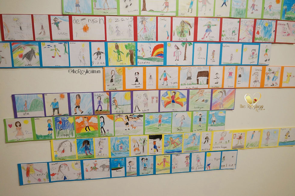The last place we visited in the gallery was the children’s artwork and I must say that we were really impressed. The children did a phenomenal job! Bella was taken by the Concertina book and even tried to reach for it because she recognised it was a book and wanted to look at it. Their use of tools and colour was really remarkable. They have very creative imaginations and it just shows if you give a child some resources they can create a masterpiece.